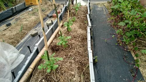 **母ケメからのLINE** 垂直仕立て栽培をやってみています。 サツマイモの茎と、里芋の茎を、それぞれまとめて固定してみました。 これは里芋の茎をまとめたところ。 サラダ大根のタネを蒔きました。 ************ ここからは、娘ushio家の話…